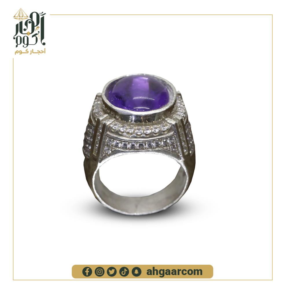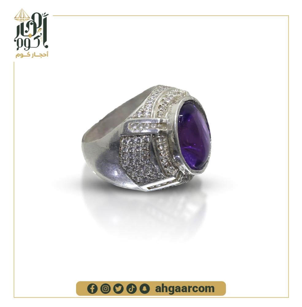 يتميز الخاتم بحجر الأمثيست كحجر رئيسي، والذي يتمتع بلونه الأرجواني إلى البنفسجي الذي يعكس الضوء بشكل جميل ويضيف جاذبية خاصة إلى الخاتم. يتم ترصيع الخاتم بالزركون، وهو حجر كريم يشبه الماس في لمعانه. يعطي الزركون بريقًا رائعًا للخاتم ويضيف لمسة من الفخامة والأناقة.