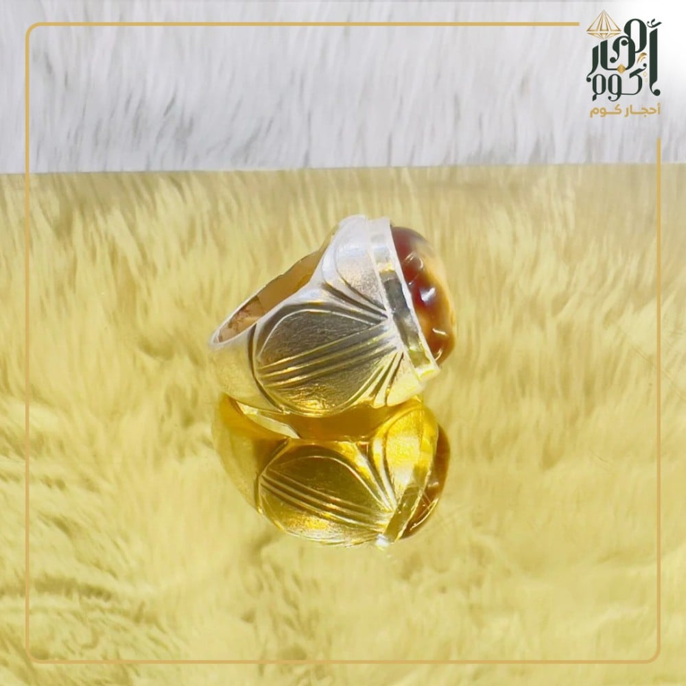 يعتبر العقيق اليماني من أندر أنواع الأحجار الكريمة، ويتميز بلونه الأحمر الداكن أو البني العميق. يعتبر هذا النوع من العقيق شديد الجمال والندرة. يعزز الخاتم جمالية الحجر العقيق اليماني الطبيعي.