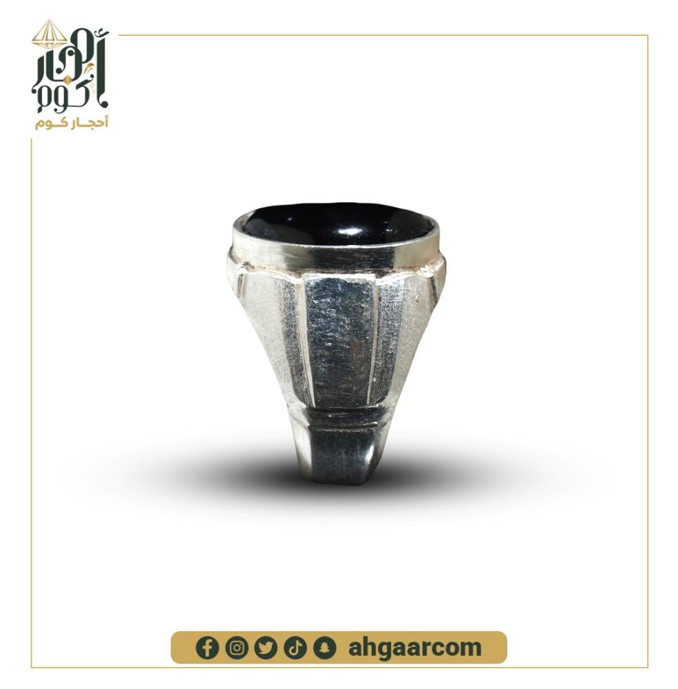 خاتم فضة صياغة يدويه بحجر العقيق اليماني الأسود