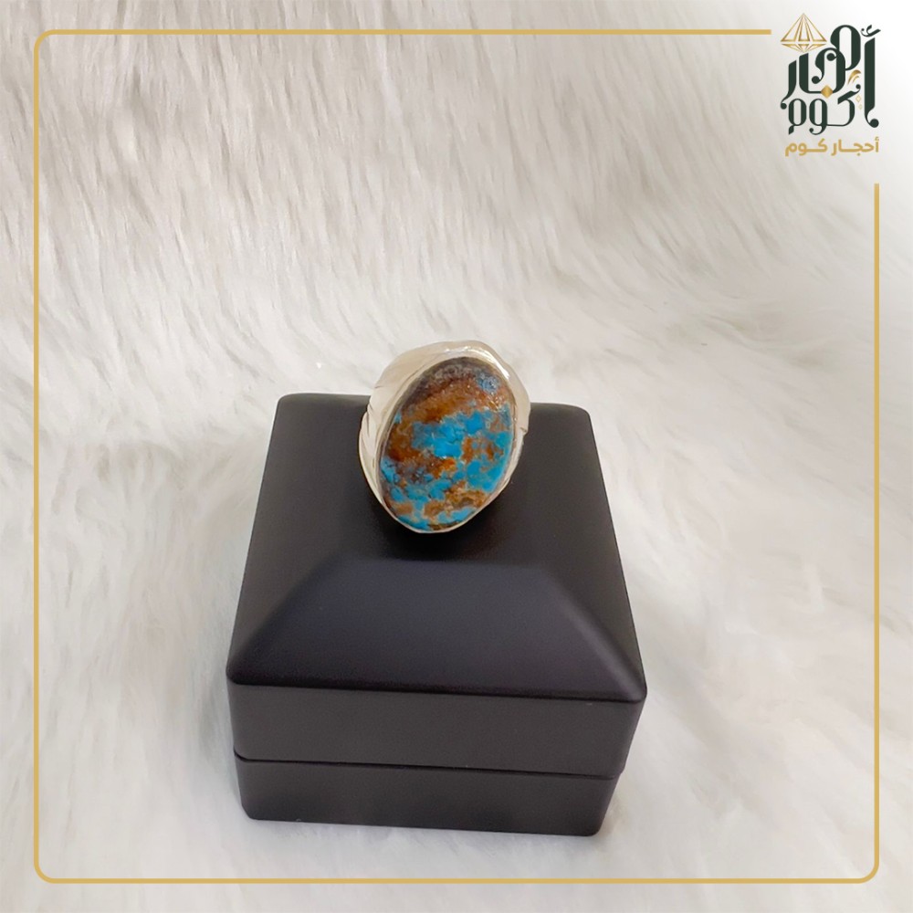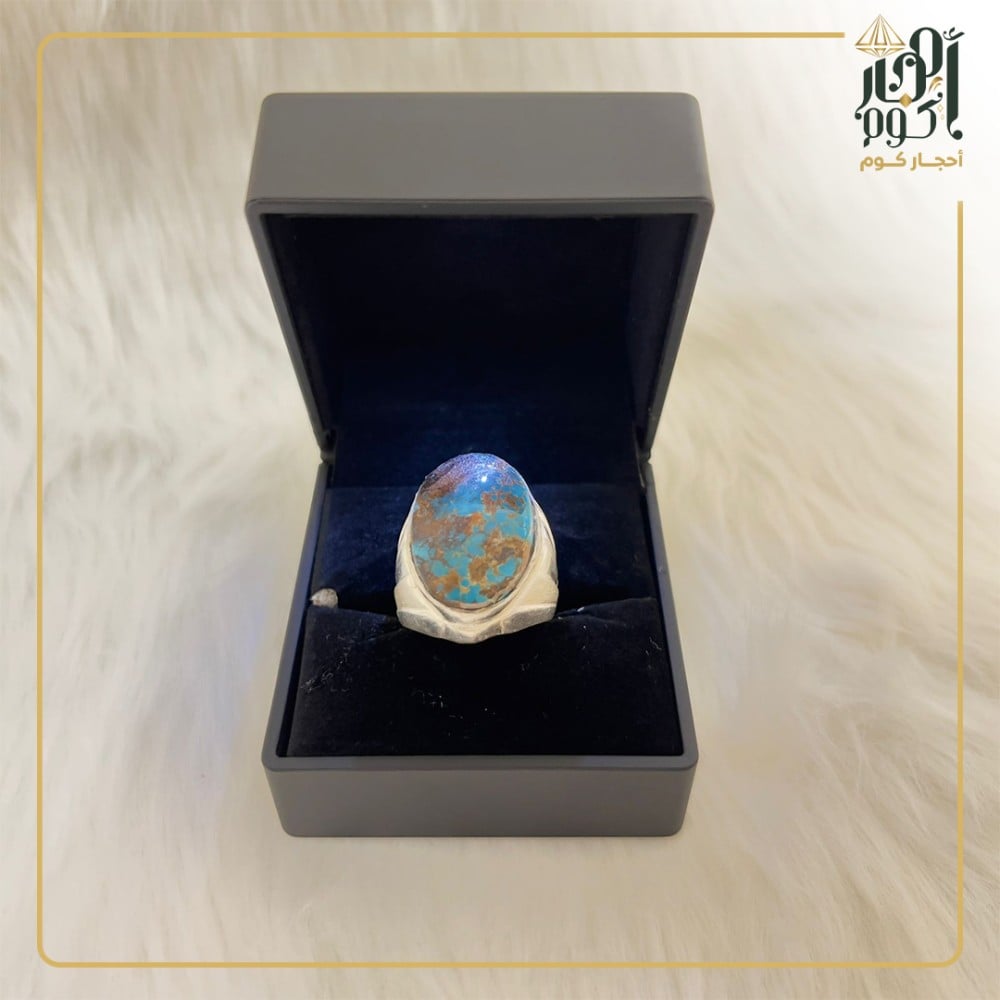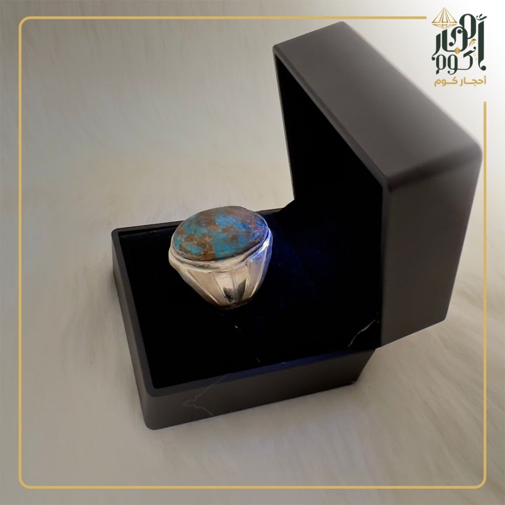 يعتبر حجر الفيروز من الأحجار الكريمة ذات اللون الأزرق الجميل، ويُعتبر الفيروز النيشابوري من أفضل أنواع الفيروز. يتميز هذا الحجر بلونه الزرقاء الراقية وقدرته على إضفاء لمسة من الهدوء والسكينة على الحلية. يتم توجيه الخاتم بحجر الفيروز النيشابوري الطبيعي، حيث يكون الحجر بحجم راهي يجذب الأنظار ويبرز جمالية الحلية.
