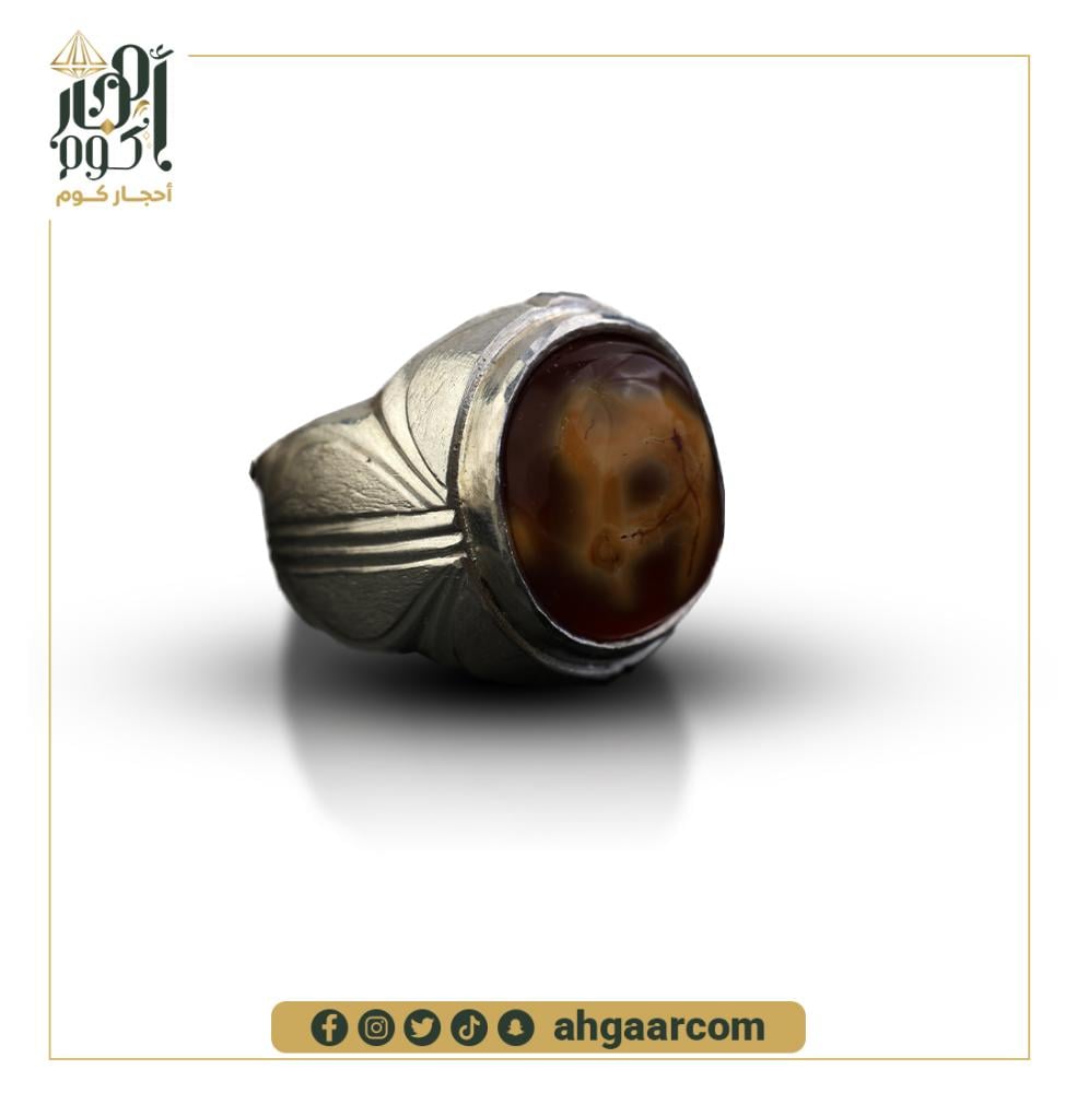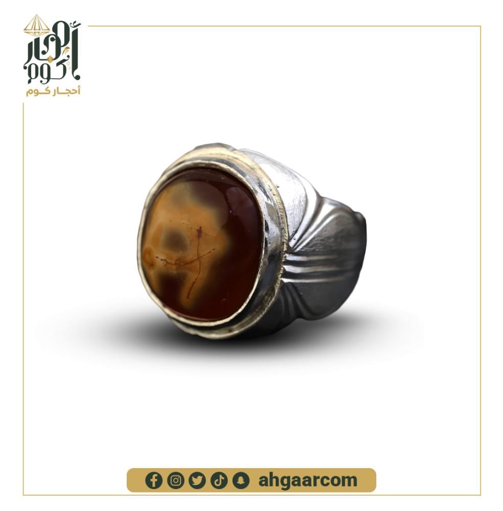 يتميز هذا الخاتم بحجر العقيق اليماني السليماني، وهو نوع من أنواع العقيق الطبيعي الذي يتم استخراجه من مناطق معينة في اليمن. يعتبر هذا الحجر مشهورًا بخصائصه الروحانية والثقافية. يعتبر حجر العقيق اليماني السليماني المصور من أجمل أنواع العقيق، حيث يتميز بألوانه الغنية والنقوش المعقدة التي تتشكل على سطحه.
